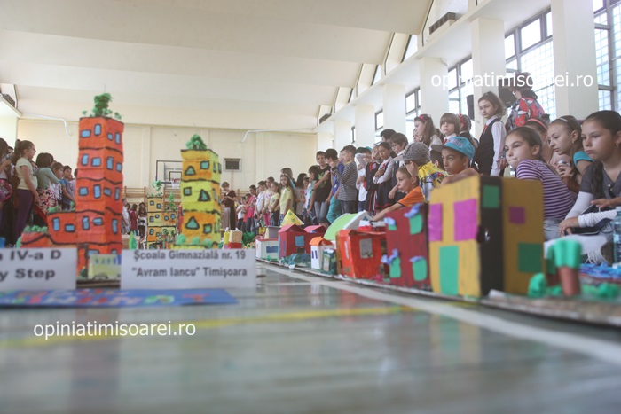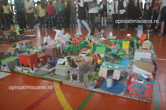 Case viu colorate, multe spatii verzi, moristi de vant, dar si gradini suspendate pe acoperisuri … asa arata orasul ideal imaginat de copiii care au participat la concursul de machete, la care au participat elevi din 15 clase din sase scoli din Timisoara: Generala 19, Generala 30, Generala 22, Liceul Shakespeare, Liceul Ion Vidu si Liceul Bela Bartok.