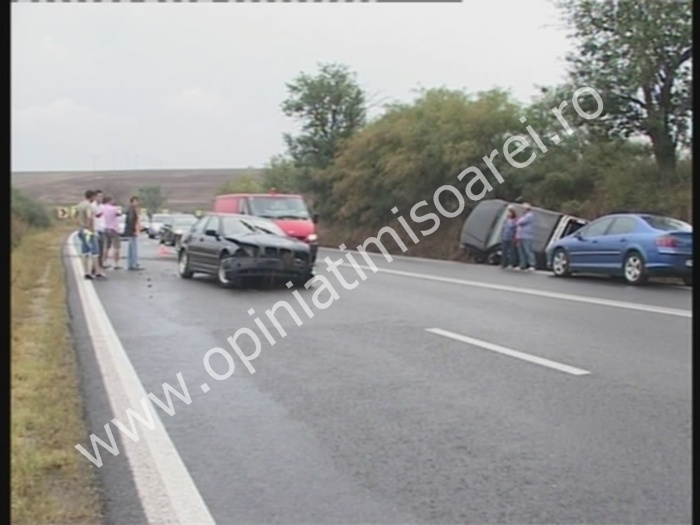 TIMIS. Loc cu ghinion pentru doi soferi pe soseaua Timisoara – Arad. Cu doar cativa kilometri inainte de localitatea Ortisoara, doi conducatori auto s-au rasturnat cu masinile intr-o curba. Accidentele s-au petrecut la doar cateva minute unul de celalalt.
