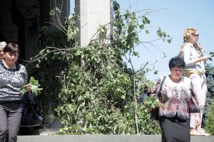 Intrarea in lacasul de cult a fost impodobita cu crengi de stejar, iar la iesire, credinciosii au cules frunze de pe aceste crengi, pentru a le duce acasa, conform obiceiului.