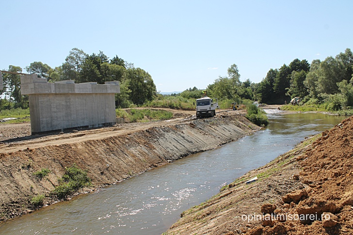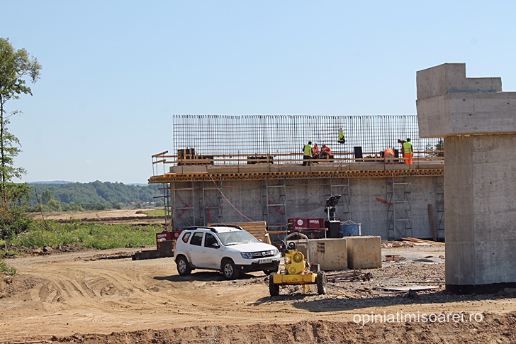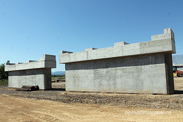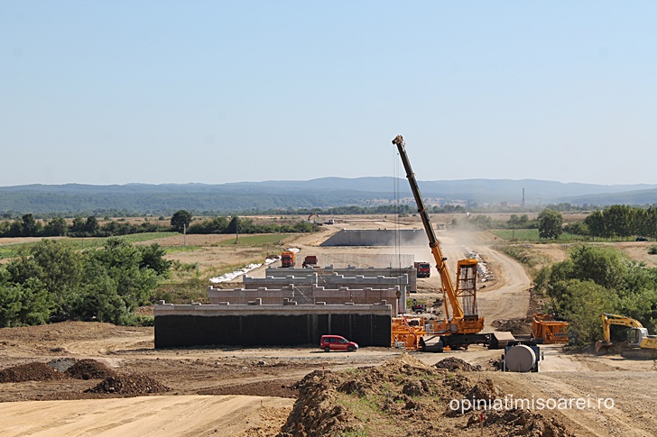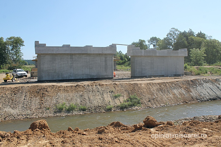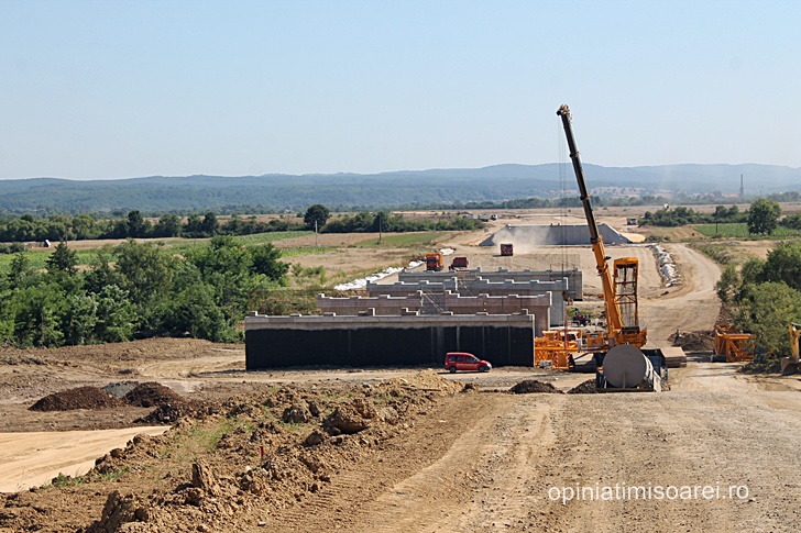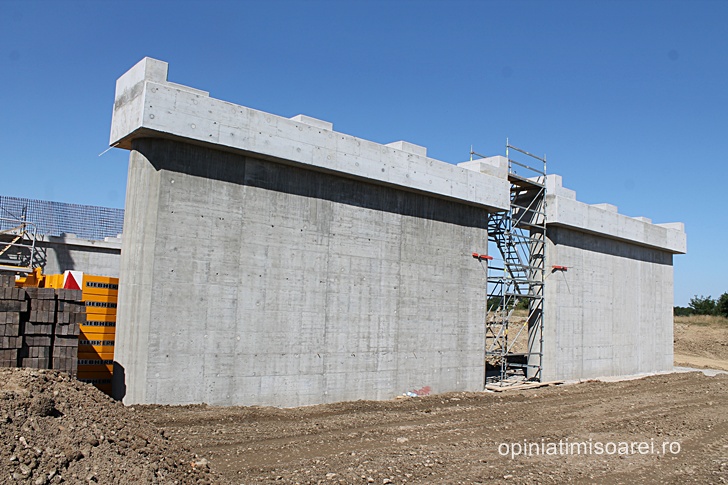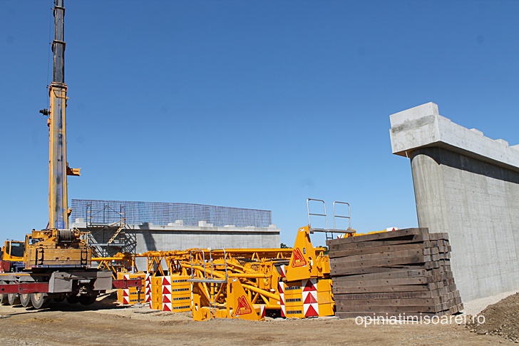 Cert este ca se lucreaza intens, nu doar in nodul rutier, ci si cateva sute de metri mai incolo, la podul ce va traversa raul Bega, care in aceasta zona abia daca are marimea unui firicel de apa. In cateva zile, aceeasi macara de mari dimensiuni se va muta aici pentru a amplasa pilele – componentele prefabricate de suprastructura.