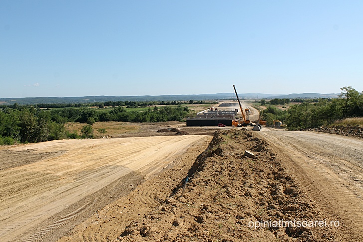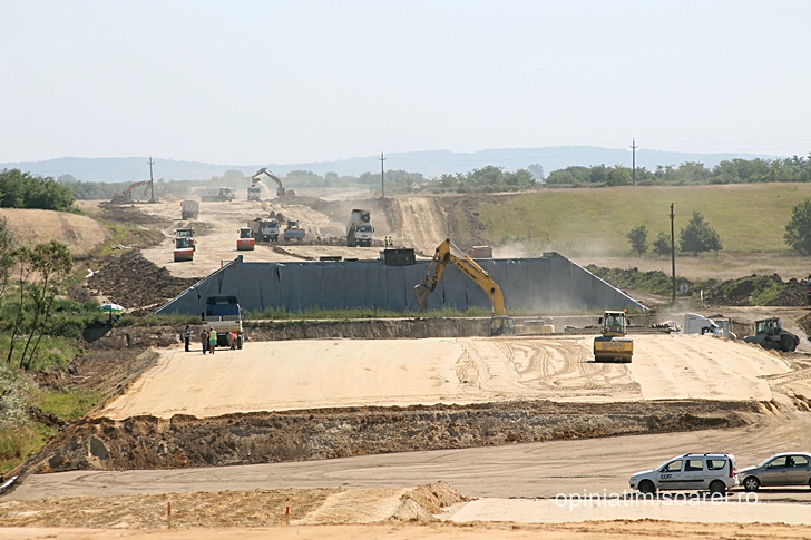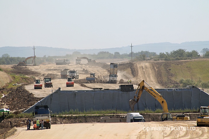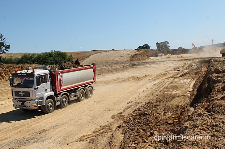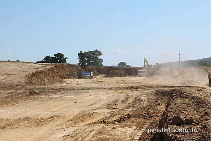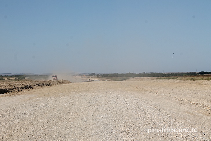 Daca la inceputul acestui an abia se intrezareau cateva semne ca aici s-ar lucra la o noua autostrada, de data aceasta lucrurile stau radical diferit. Norii de praf ridicati de zecile de camioane care strabat santierul si care se vad la mare departare sunt semn ca lucrurile se misca, in sfarsit, in directia cea buna.