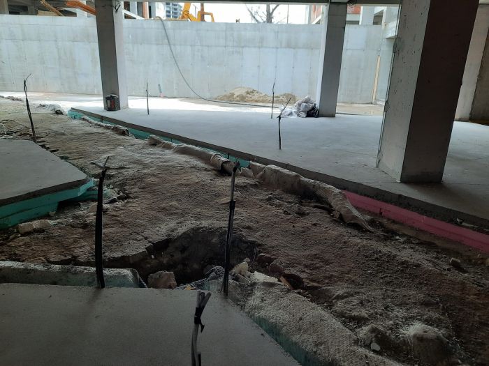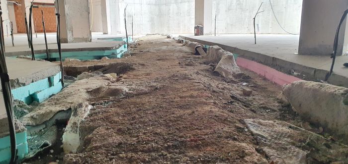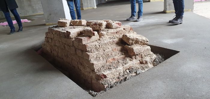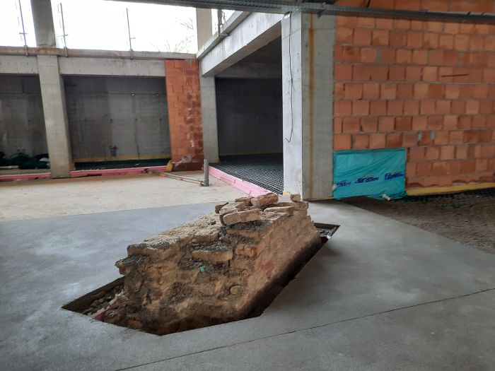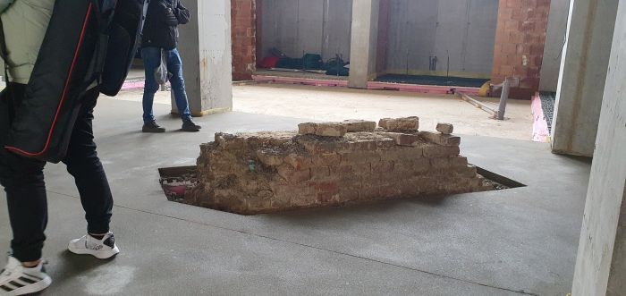 Fragmentele de ziduri lasate descoperite la demisolul cladirii urmeaza ca, la finalizarea lucrarilor, sa fie incorporate in designul scolii.