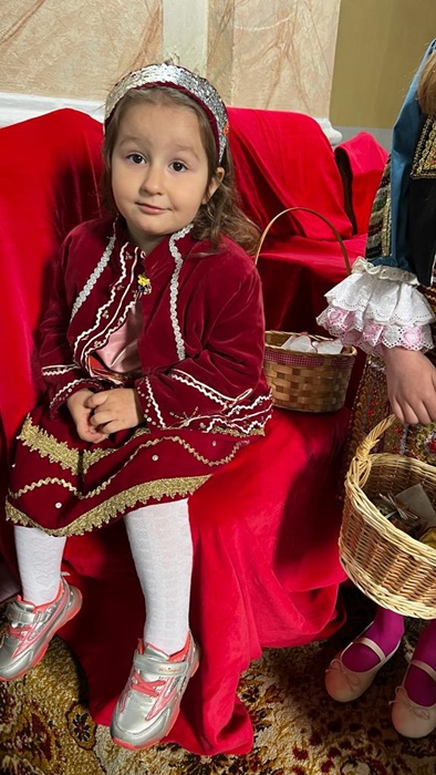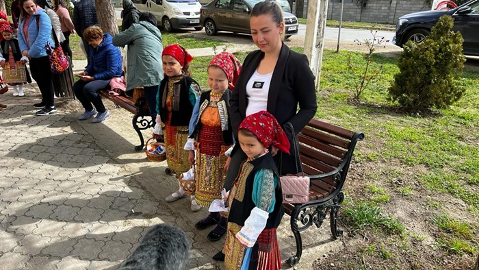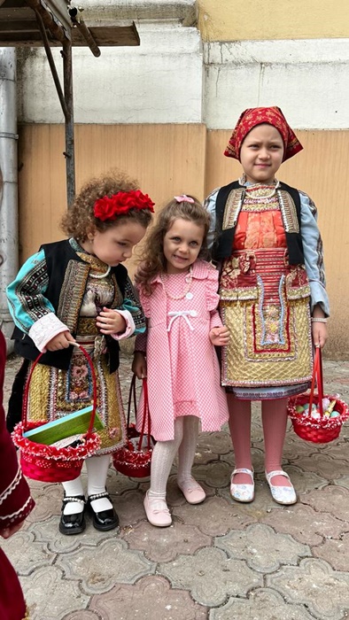 Fetitele bulgaroaice de pana la 10-12 ani din comuna Dudestii Vechi s-au imbracat si in acest an in vesmintele traditionale si au facut spectacol.