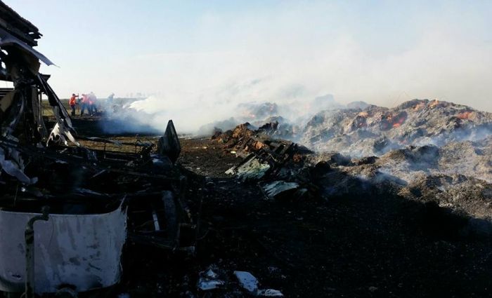 TIMIS. Misiune dificila pentru pompierii timiseni. Acestia au fost chemati sa stinga un incendiu de paie si fan a izbucnit aproape de granita, pe raza localitatii Cenad. Pompierii se lupta de ore in sir cu flacarile care au cuprins aproximativ 100 de tone de fan si paie.