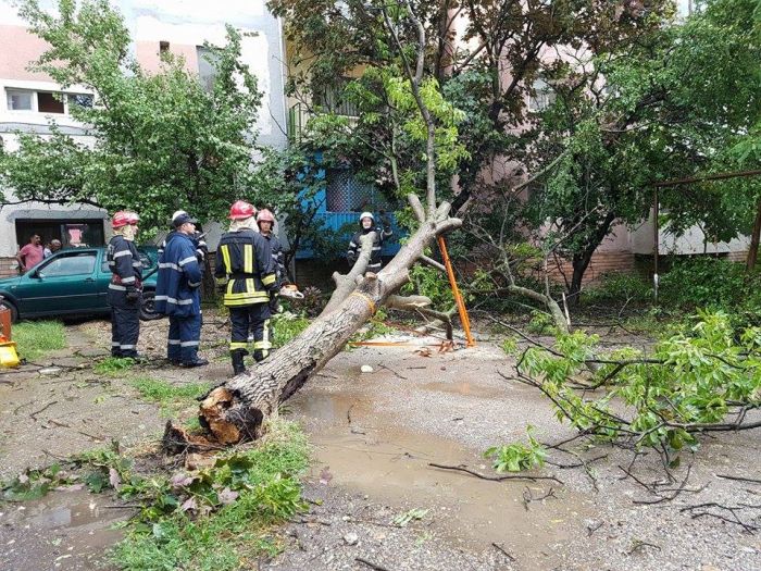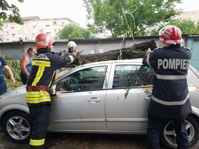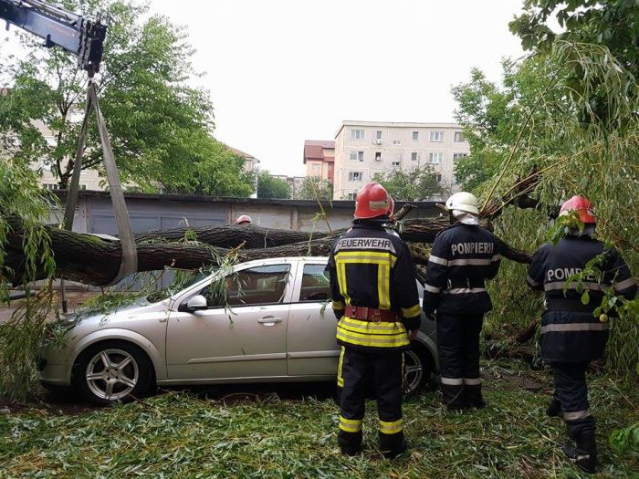 Pompierii au fost chemati sa intervina, dupa ce vijelia a rupt crengi de copaci care au cazut fie pe masini, fie pe carosabil.