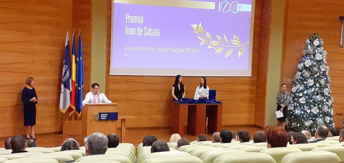 În continuare, au fost acordate premiile „Ioan de Sabata” cadrelor didactice care s-au remarcat prin excelență în procesul educațional și în tutorierea studenților, în baza unei competiții deschise, la propunerea comisiilor instituite la nivelul facultăților: ș.l.dr.inf. Oana Sorina Chirilă și as.drd.ing. Stelian-Nicolae Nicola, de la Facultatea de Automatică și Calculatoare; ș.l.dr.ing. Radu-Ovidiu Ardelean, de la Facultatea de Chimie Industrială și Protecția Mediului; ș.l.dr.ing. Maria-Roberta Jianu și ș.l.dr.ing. Clara Beatrice Vâlceanu, de la Facultatea de Construcții; ș.l.dr.ing. Ciprian-Ovidiu-Miron Dughir și ș.l.dr.ing.Constantin Marian Bucos, de la Facultatea de Electronică, Telecomunicații și Tehnologii Informaționale; ș.l.dr.ing. Ana-Adela Popa, de la Facultatea de Inginerie Electrică și Energetică; conf.dr.ing. Sorin-Aurel Rațiu, de la Facultatea de Inginerie Hunedoara; ș.l.dr.ing. Attila Turi, de la Facultatea de Management în Producție și Transporturi; ș.l.dr.ing. Cristian-Emil Moldovan și ș.l.dr.ing. Adrian-Eugen Cioablă, de la Facultatea de Mecanică; as.dr. Andreea-Florina Pele, de la Facultatea de Științe ale Comunicării.