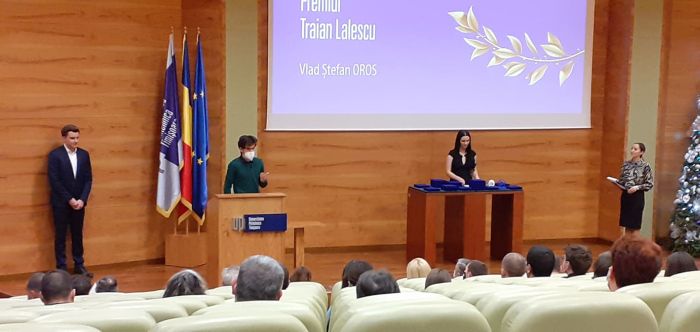 Premiul „Traian Lalescu”, instituit pentru recompensarea rezultatelor excepționale obținute în învățământul preuniversitar a fost oferit elevului Vlad-Ștefan Oros, de la Liceul Teoretic „Grigore Moisil”, medaliat cu aur la olimpiadele internaționale de Fizică, Astronomie, pasionat de lingvistică, pian și fotografie.
