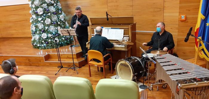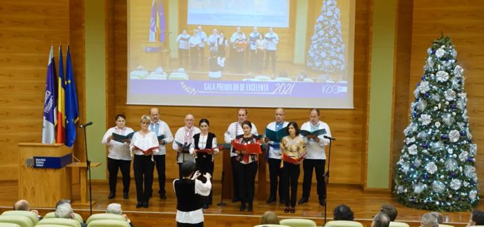 Atmosfera festivă a Galei Premiilor de Excelență UPT 2021 a fost completată cu un moment artistic susținut de Trio Contraste (Dorin Cuibariu – clarinet, Sorin Petrescu – pian, Doru Roman – vibrafon/percuție) cu „O scurtă istorie a jazzului de la origini până aproape de zilele noastre”, precum și un recital de colinde susținut de Corul Universității Politehnica Timișoara.