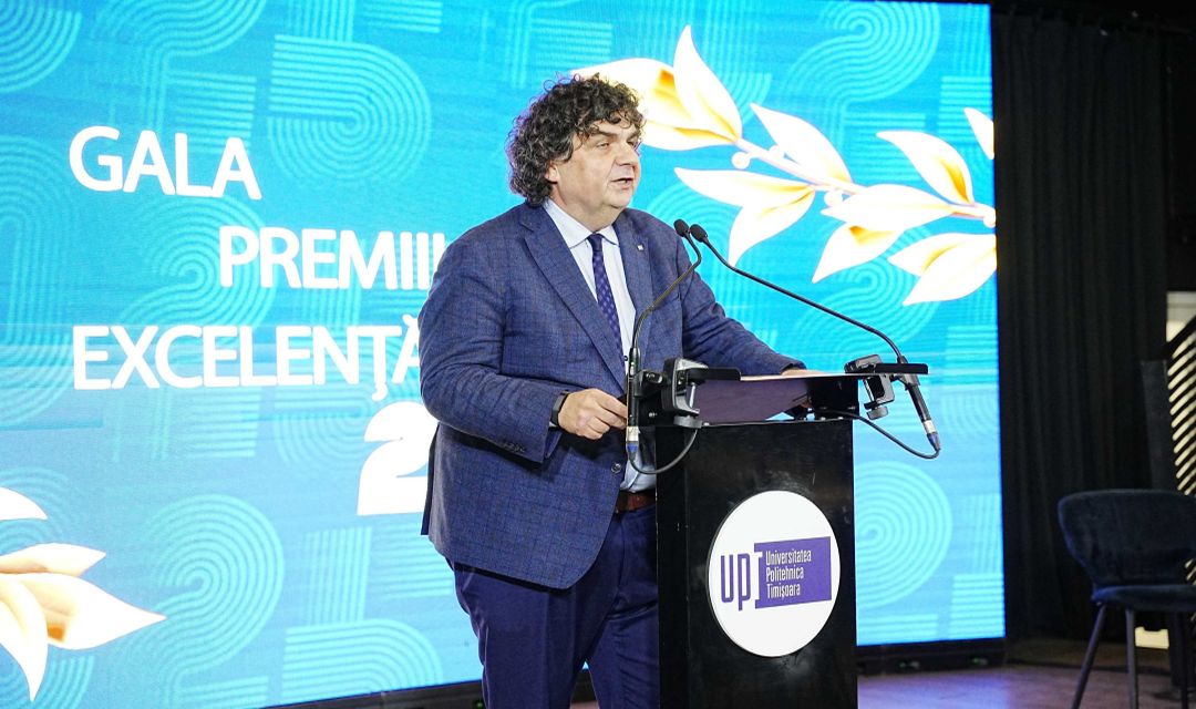 Evenimentul a fost deschis de rectorul Universității Politehnica Timișoara, conf.univ.dr.ing. Florin Drăgan, care și-a construit discursul în jurul a două valori esențiale: excelența și străduința. Rectorul UPT a rememorat momente definitorii din istoria instituției: curajul studenților din 1956, manifestat chiar în acest spațiu, și fermitatea rectorului Ioan Anton, care a avut tăria de a se opune deciziei dictatoriale privind amplasamentul clădirii Electro. Tot el a subliniat că toți laureații ediției din 2025 au demonstrat, în feluri diferite, „străduința care stă la baza autenticei excelențe”, indiferent dacă vorbim despre activitate didactică, cercetare, cultură, sport, parteneriate strategice sau contribuții la viața comunității.