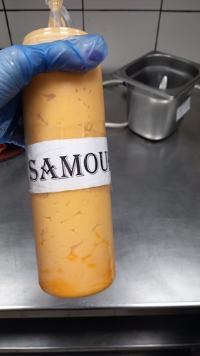 – In spatiul de igienizare a veselei au fost identificate produse detergent lichid pentru spalarea automata a vaselor care aveau imprimate pe ambalat data 12/12/2022 fara a exista mentiuni pe produs cu privire la termenul de valabilitate sau data fabricatiei.