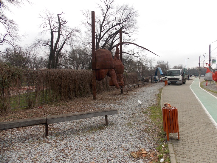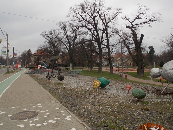 Cat despre puii de tabla ruginita si celelalte componente ale coltului artistic din dreptul Parcului Copiilor, edilul spune ca vor ramane, deocamdata, acolo.