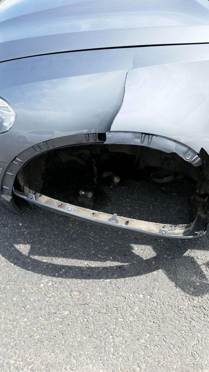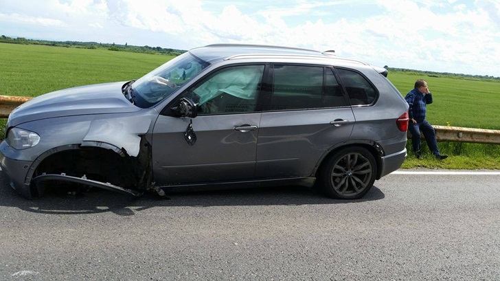 Cornu se indrepta spre Herneacova, iar la iesirea din Remetea Mare, a lovit un Opel Agila care mergea catre Timisoara. In urma impactului, roata din stanga fata de la masina omului de afaceri, un BMW, a sarit, iar autoturismul a rulat cateva sute de metri pe sosea. Celalalt sofer a iesit in decor.