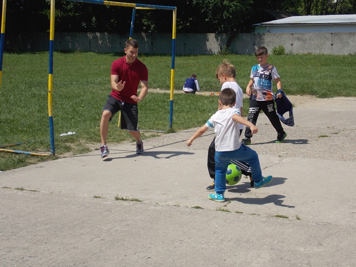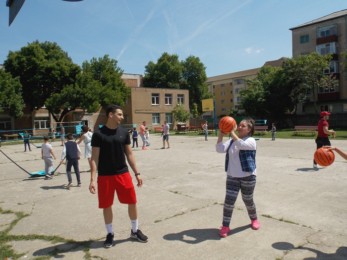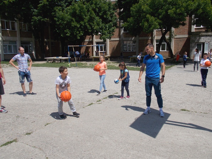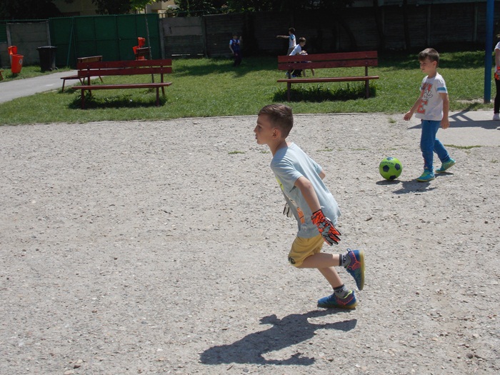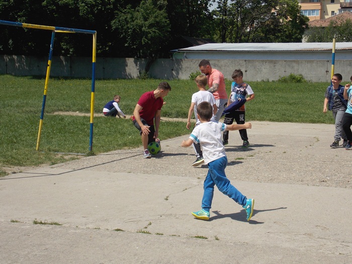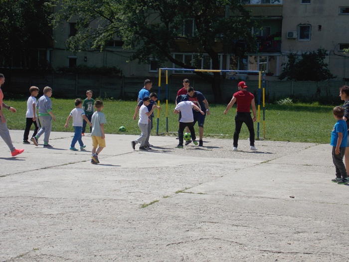 Alaturi de antrenori si de copii, la Centrul educational al Organizatiei Salvati Copiii a venit si fotbalistul lui ASU Poli Timisoara, Ionut Vucea, cel care a jucat fotbal alaturi de cei mici, dar i-a indemnat sa arunce si la cosul de baschet.