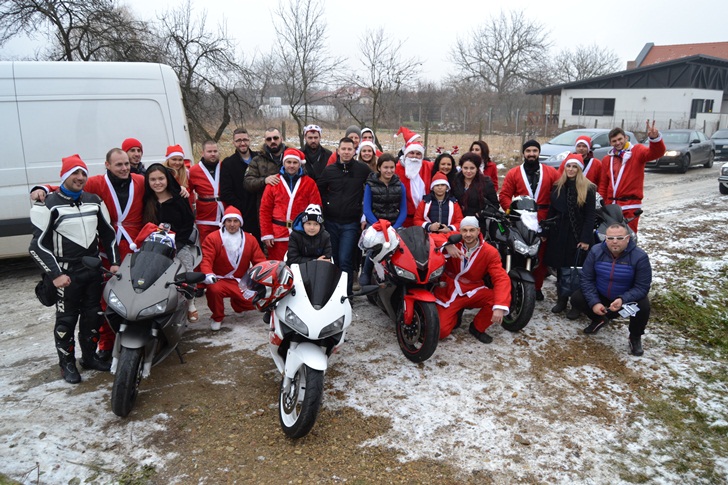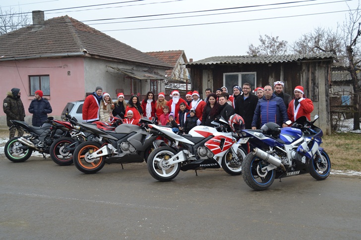 Copiii s-au bucurat nespus de intalnirea cu Mos Craciun si i-au cantat colinde, apoi s-au fotografiat pe motociclete.