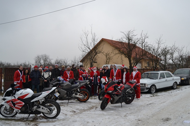 TIMISOARA. Mos Craciun a venit pe doua roti la mai multe familii nevoiase de langa Timisoara. Un grup de motociclisti, Gruparea Moto din Timisoara, le-a facut unor copii sarbatorile frumoase.