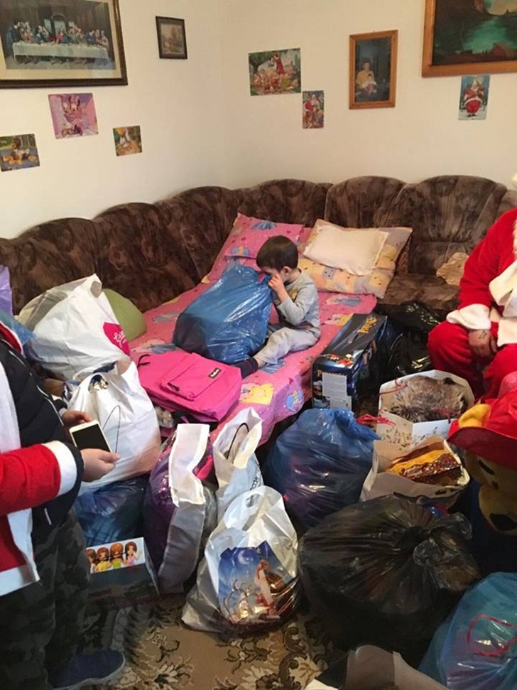 Mosul a ajuns la o fetita de 7 ani si un baietel de 4, apoi la o bunica singura ce are in grija doi baieti, unul de 10 ani si altul de 17 ani paralizat in urma unui accident. In al treilea caz, motociclistii au mers la doua fete gemene de 17 ani, dar si la o alta familie cu doua bebeluse gemene si un baietel surdo-mut.