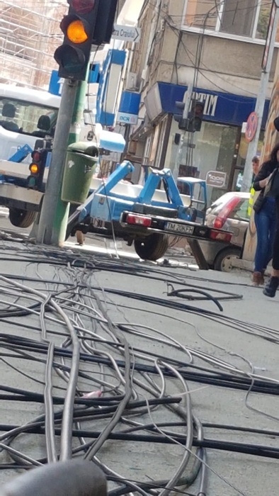 Astfel, joi dupa-amiaza au fost retezati zeci de metri de cabluri pe bulevardul Republicii, pe tronsonul cuprins intre strada Paris si strada Jiul.