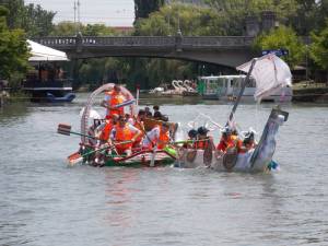 TIMISOARA. Barci cu forme care de care mai traznite s-au intrecut pe Bega intr-un concurs organizat de EcoStuff Romania, care a adus sute de timisoreni pe malurile canalului. Nu au lipsit personaje din filme sau desene animate si nici bataile cu apa.