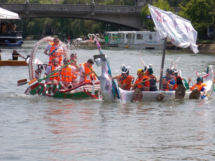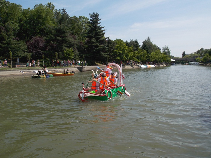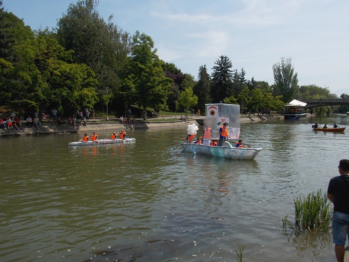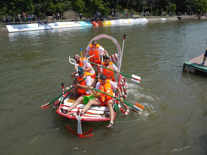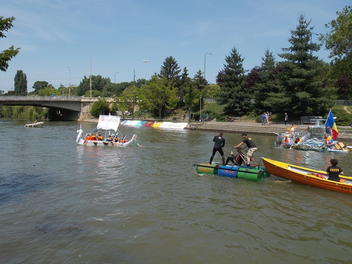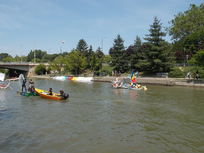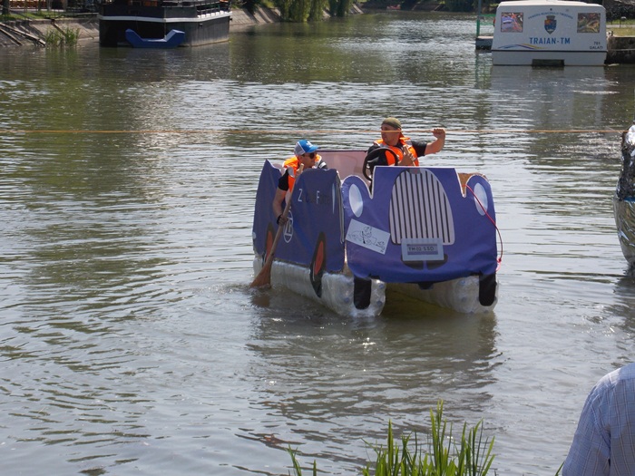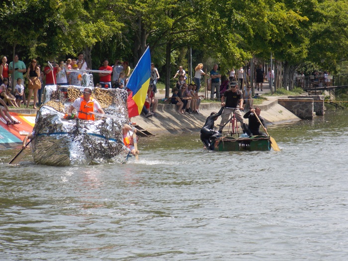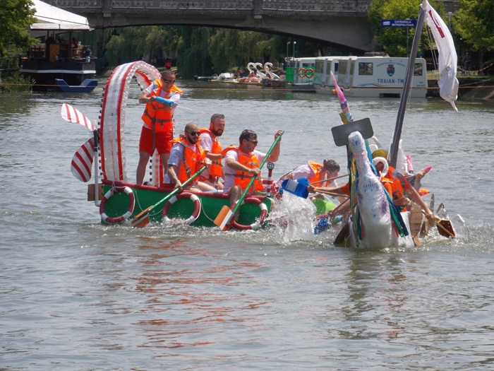TIMISOARA. Barci cu forme care de care mai traznite s-au intrecut pe Bega intr-un concurs organizat de EcoStuff Romania, care a adus sute de timisoreni pe malurile canalului. Nu au lipsit personaje din filme sau desene animate si nici bataile cu apa.
