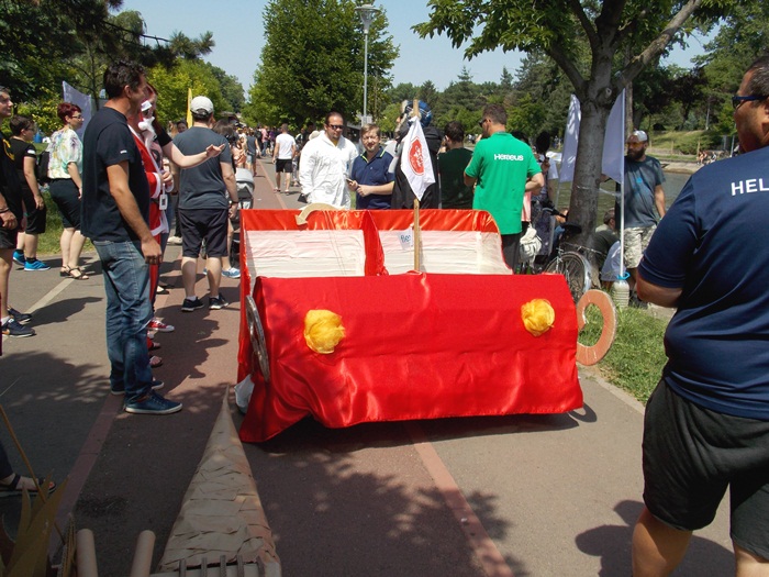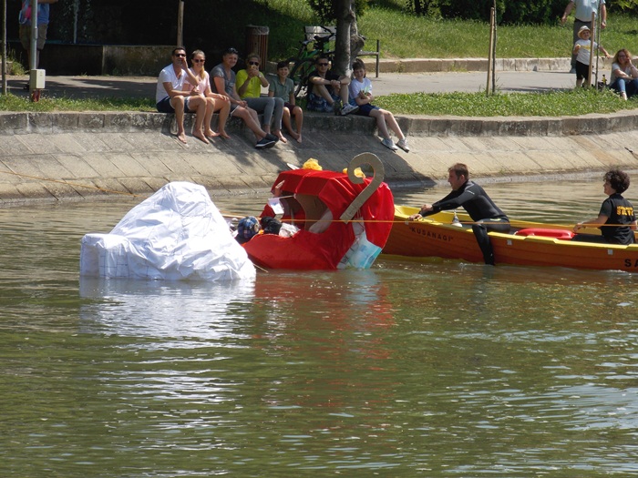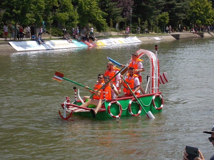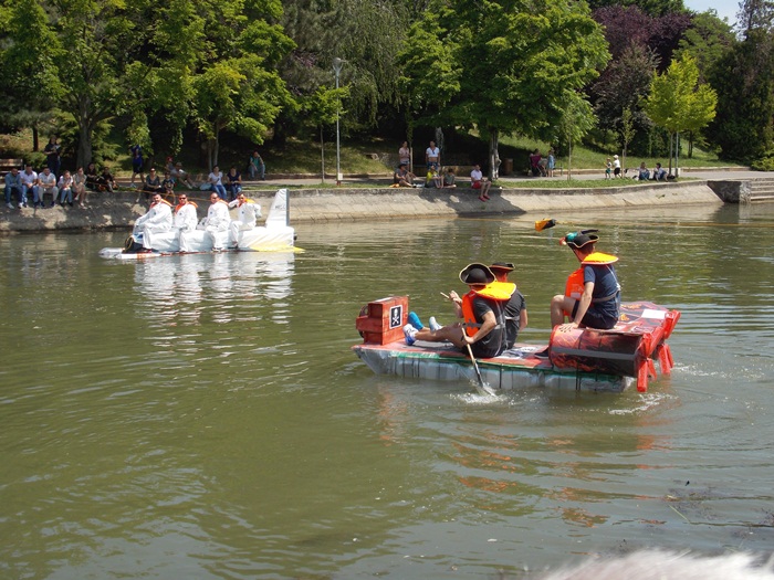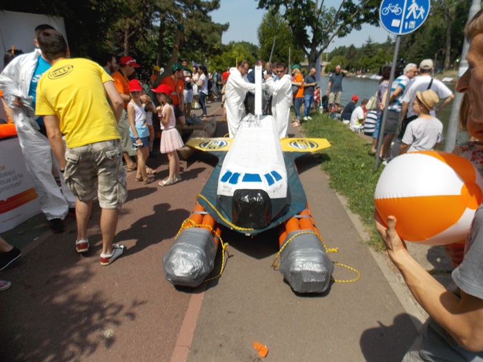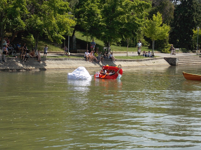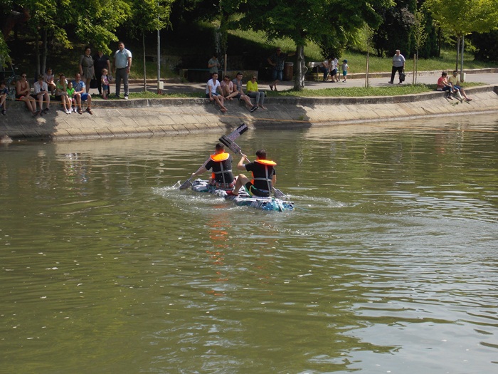 Concurentii au dat frau liber imaginatiei si au folosit cartonul sau plasticul pentru a crea ambarcatiuni cu forme care de care mai interesante. Si ca la orice concurs, au mai aparut si mici incidente, dupa ce dupa ce unele barcute s-au ciocnit, iar una a fost foarte aproape sa se rastoarne.