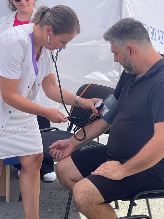 Primul ”interviu” a fost cu tensiometrul, pentru a vedea în ce măsură afecteză capriciile vremii din ultima perioadă sănătatea, iar al doilea a fost cu glucometrul, pentru a măsura glicemia (zahărul din sânge), un alt indicator al unor posibile dezechilibre din organism. După ce am povestit cu pacienții, le-am recomandat ce pot face pentru îmbunătățirea stării de sănătate și cum să se ferească de efectele schimbărilor de temperatură, ale expunerii prelungite la soare, lipsa lichidelor, excesul de carbohidrați și grăsimi etc.