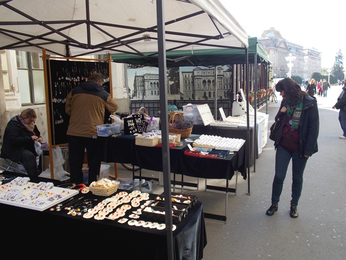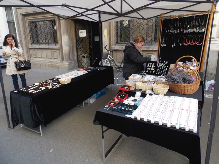 Si chiar daca targul se numeste “Produs in Banat”, nu au venit doar producatori banateni sau din zone apropiate, ci si de la mai mare departare. O domnisoara expune genti din piele, aduse de la Sfantu Gheorghe, la un alt stand gasim dulciuri si baclavale facute la Brasov, iar pe alte tarabe sunt expuse bijutierii care vin tot de la poalele Tampei.