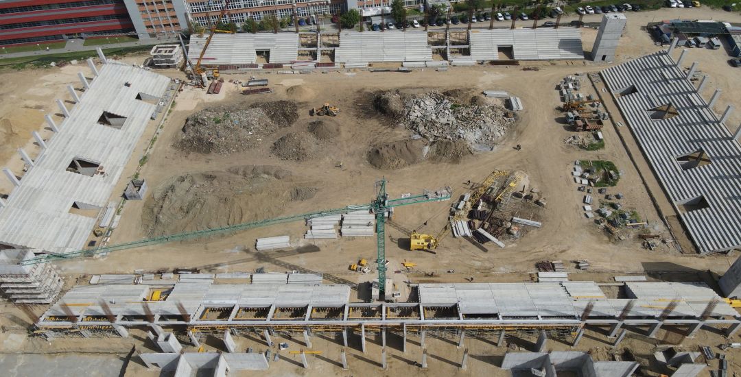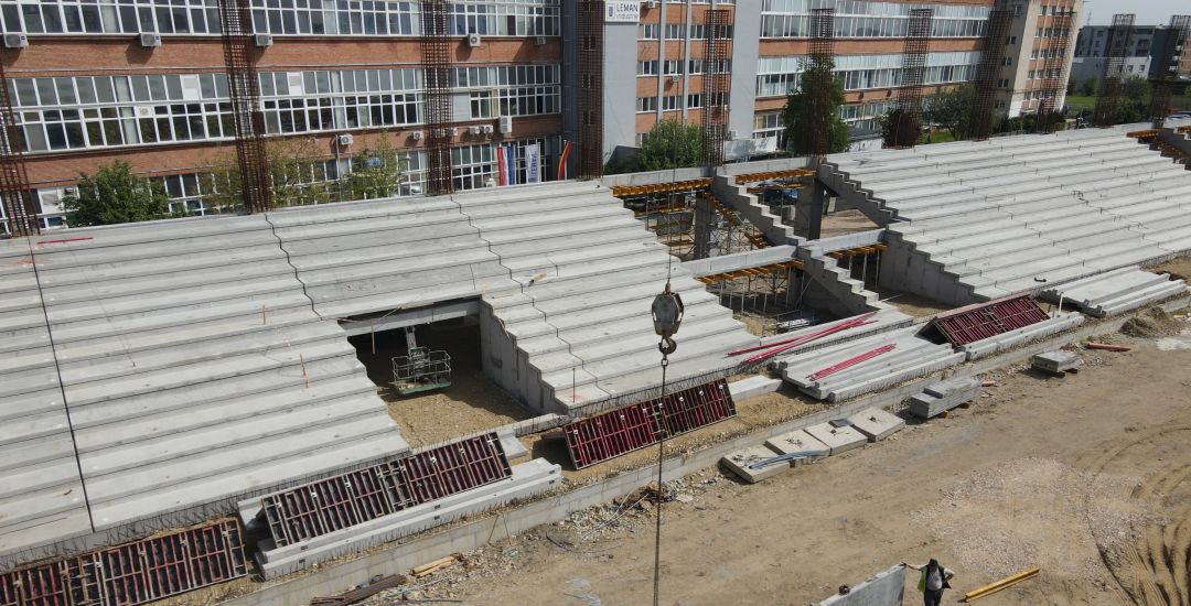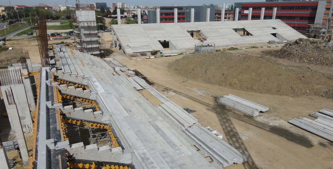 TIMISOARA. De la un teren viran în urmă cu un an, în Calea Buziașului prinde din ce în ce mai mult contur primul stadion nou construit la Timișoara în zeci de ani.