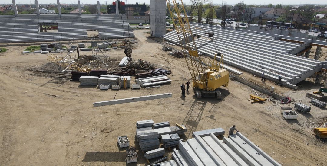 De asemenea, se fac intervenții la stâlpii de susținere a acoperișului viitorului stadion.