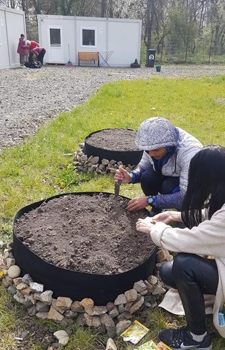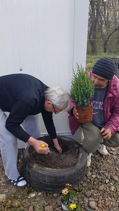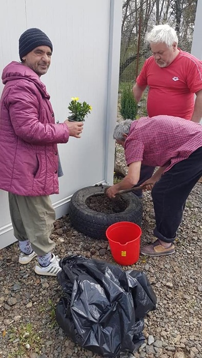 Directia de Asistenta Sociala a Primariei a obtinut din sponsorizari seminte, rasaduri si flori pe care le-a adus in centrul de la marginea Timisoarei. Oamenii strazii au imprumutat cateva unelte si o roaba si au amenajat o mica gradina in curtea Centrului.