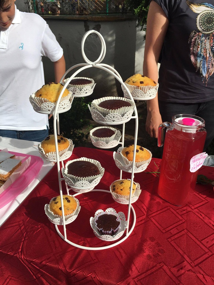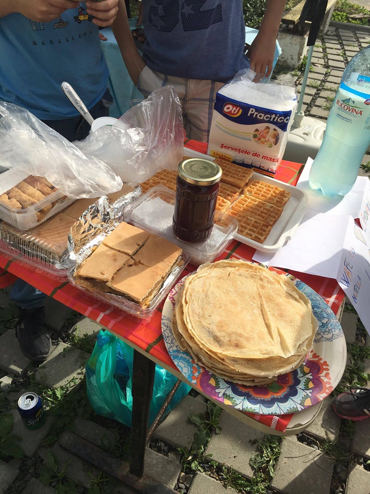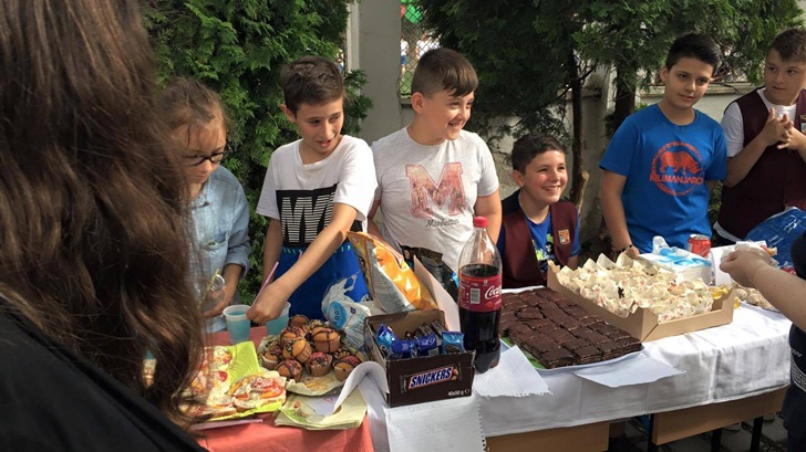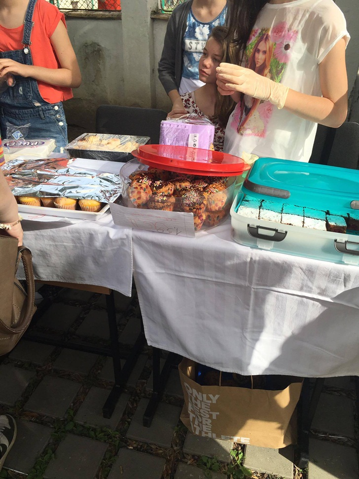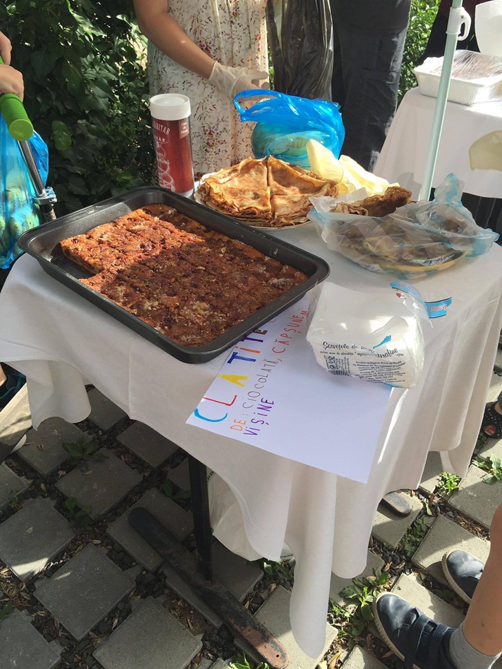 Inca de dimineata, elevii de la mai multe clase de gimnaziu si-au intins pe mese produsele si si-au asteptat clientii. Au scos la vanzare briose, negrese, clatite cu gem, cornulete si joffre, langa care au asezat sucuri proaspete. Spera sa stranga cat mai multi bani, care vor ajunge la copii mai putin norocosi decat ei.