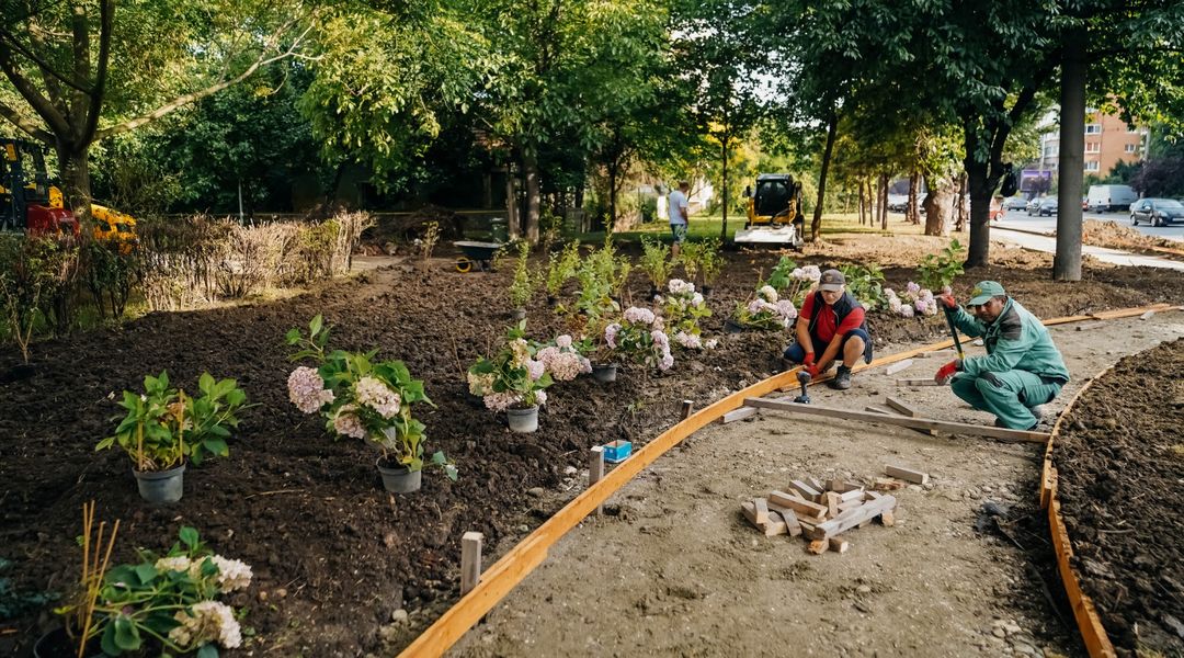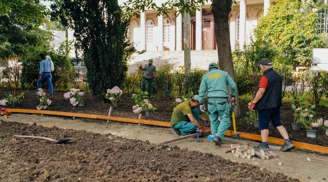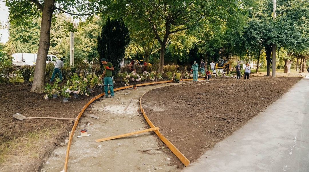 A fost mai intai reconstruit trotuarul spart de utilajele primariei, iar apoi terenul a fost nivelt. Acum, reprezentantii municipalitatii anunta ca au inceput sa planteze flori si arbori.