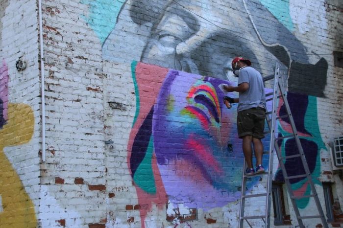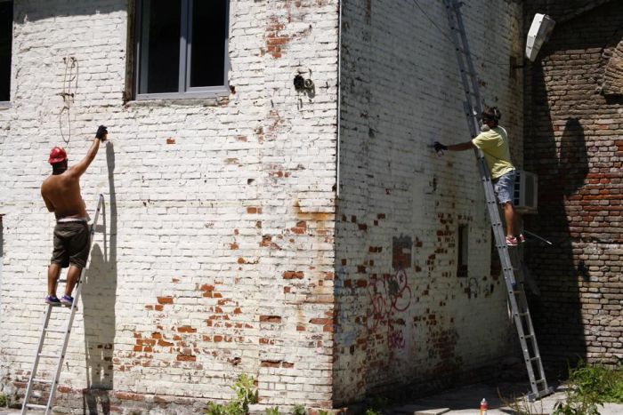 Astfel, Teatrul National Timisoara a pus la dispozitie peretii Salii 2 pentru desenul unor peisaje urbane, care sunt executate de doi dintre cei mai bine cotati grafferi ai lumii, spaniolii Iker Muro (Murone) si Txemy.