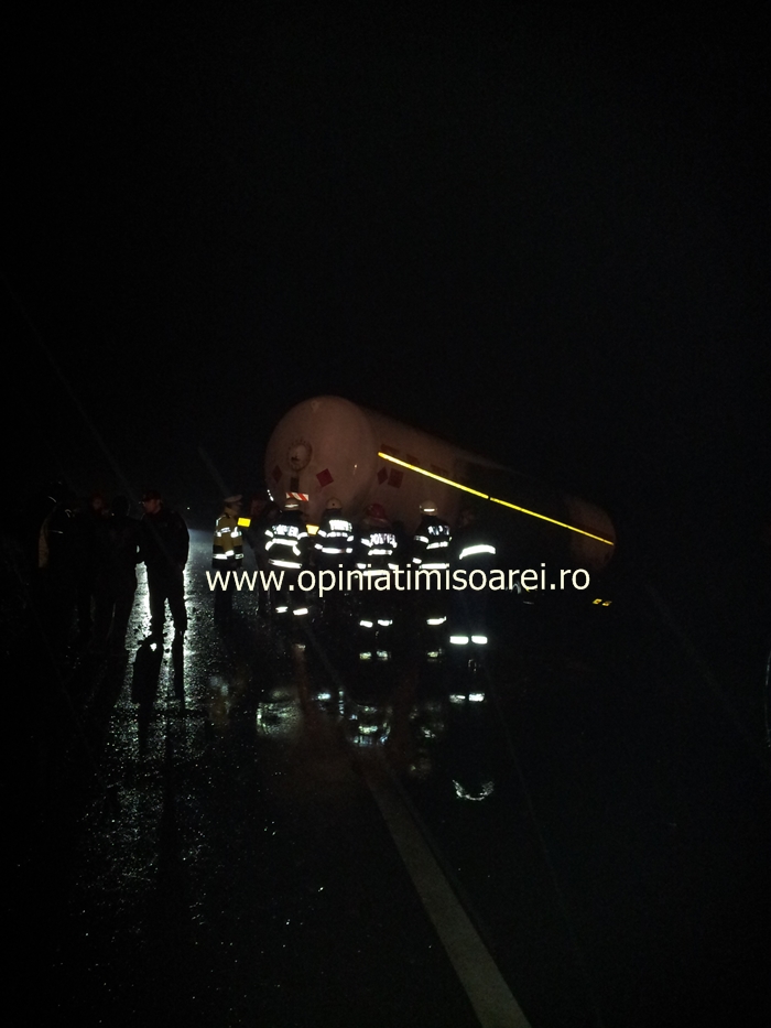 Soferul cisternei se indrepta spre Buzias. Imediat dupa ce a trecut de bifurcatia care duce spre Albina s-a trezit ca cisterna ii este acrosata de o masina care tocmai intrase pe contrasens. Nu a mai reusit sa stapanesca volanul, a derapat si a ajuns cu cabina in sant. Din fericire, cisterna era goala, altfel ar fi putut exista pericolul de explozie sau incendiu.