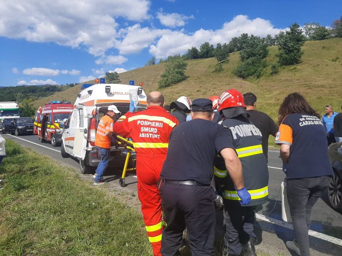 TIMISOARA. Impact devastator pe Drumul National 6, in apropierea localitatii Cornea din judetul Caras Severin. Doua masini si un tir au fost implicate intr-un accident, in urma caruia doi oameni au ajuns la spital.