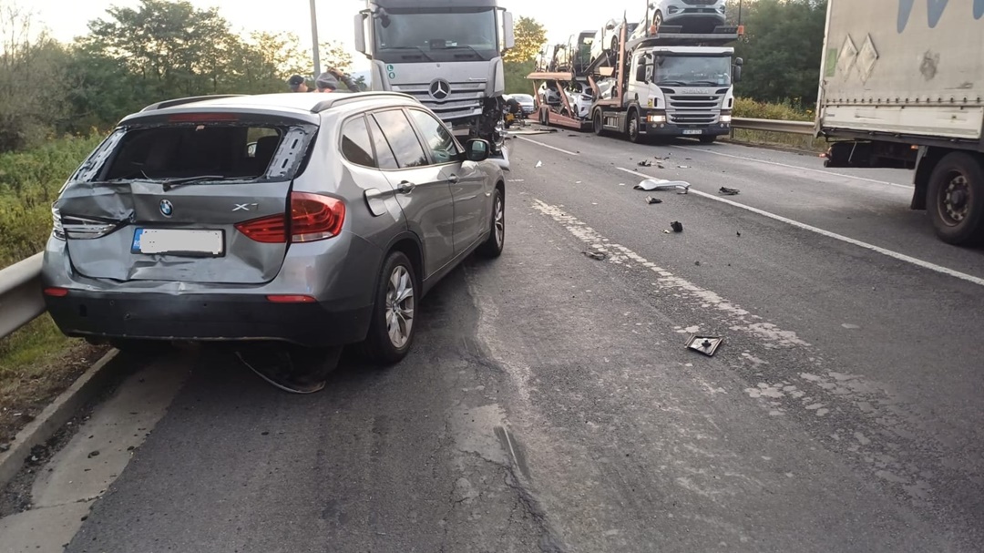 Un autocamion si doua BMW-uri, intre care unul cu remorca, s-au izbit pe Centura Caransebesului.