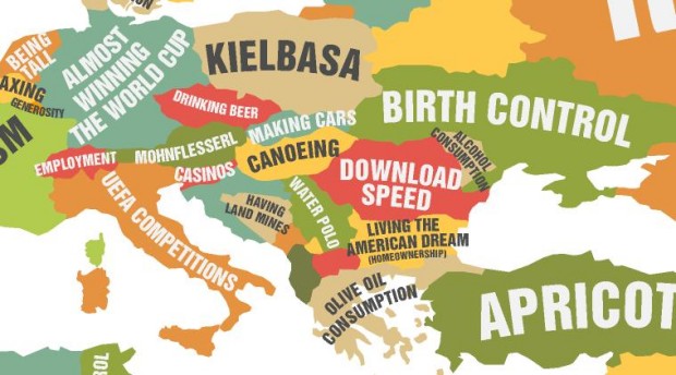 Harta a fost intocmita in functie de abilitatile locuitorilor tarii respective dar si de alte caracteristici mai mult sau mai putin ciudate. Iar asta poate insemna extrem de multe, de la inclinatia spre grupari fasciste si pana la sansa de a fi lovit de fulger.