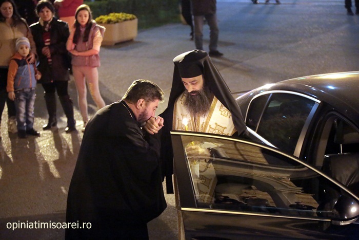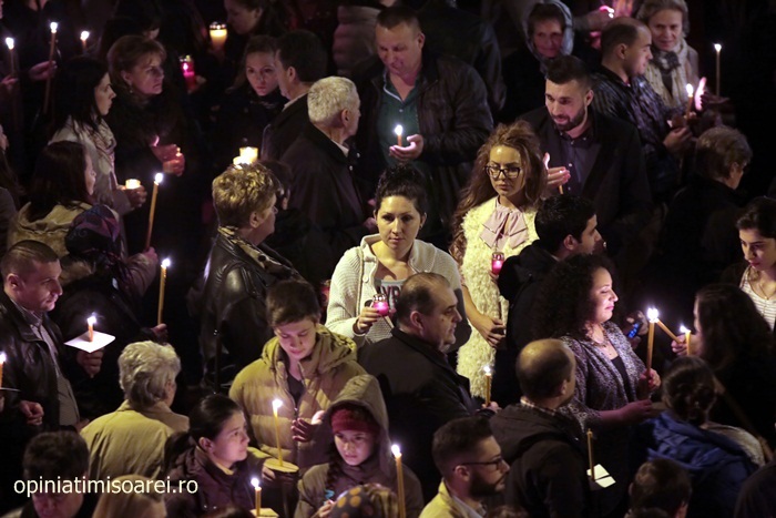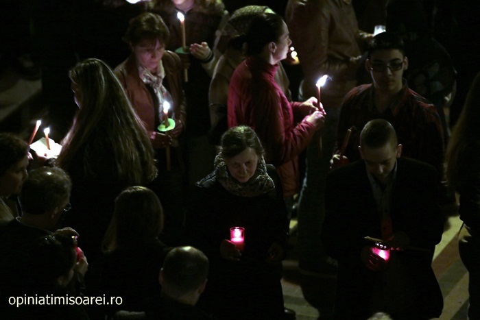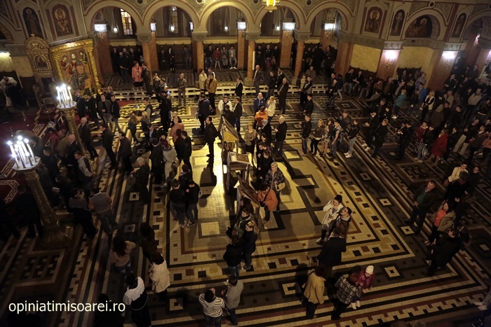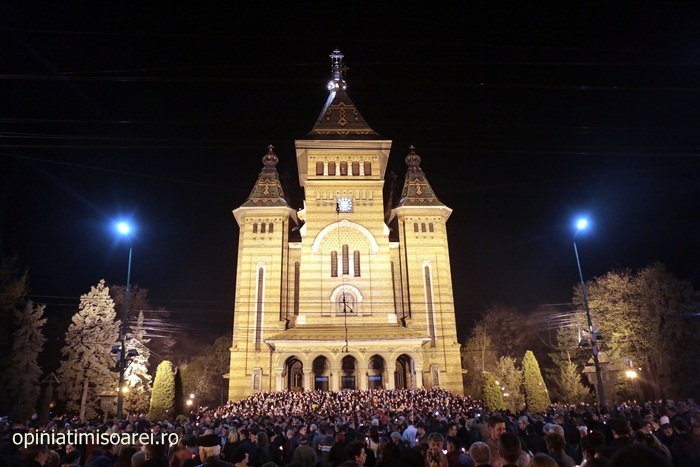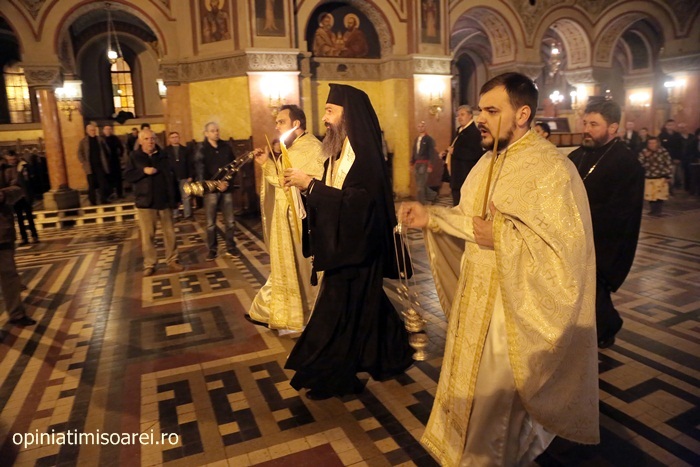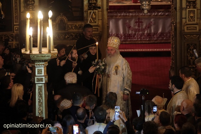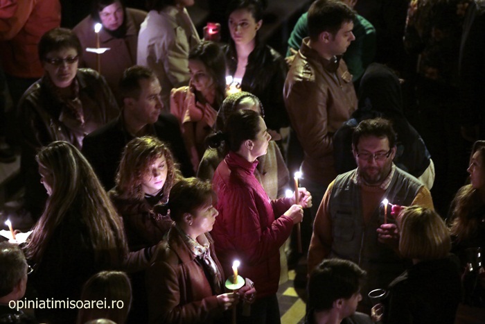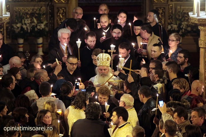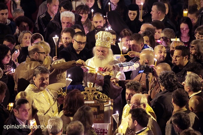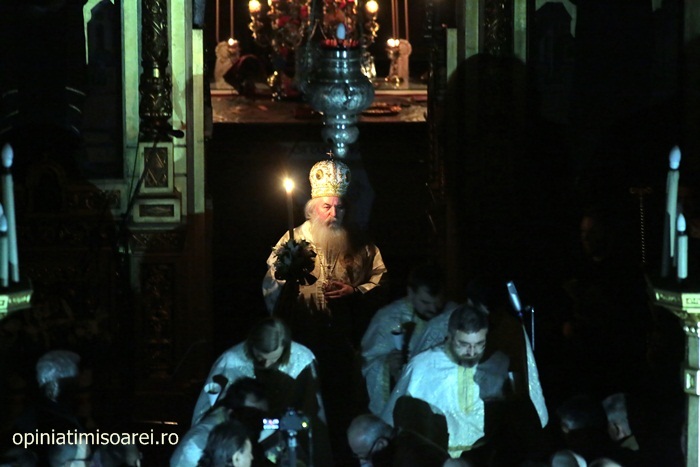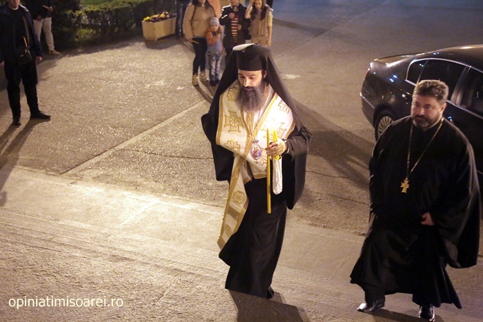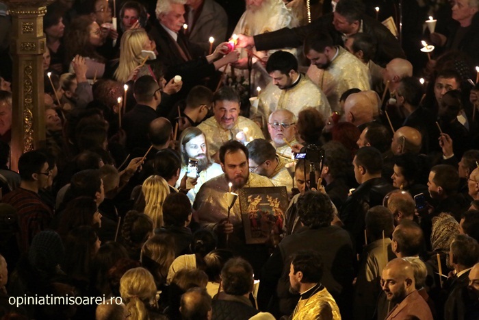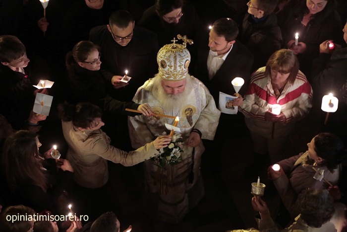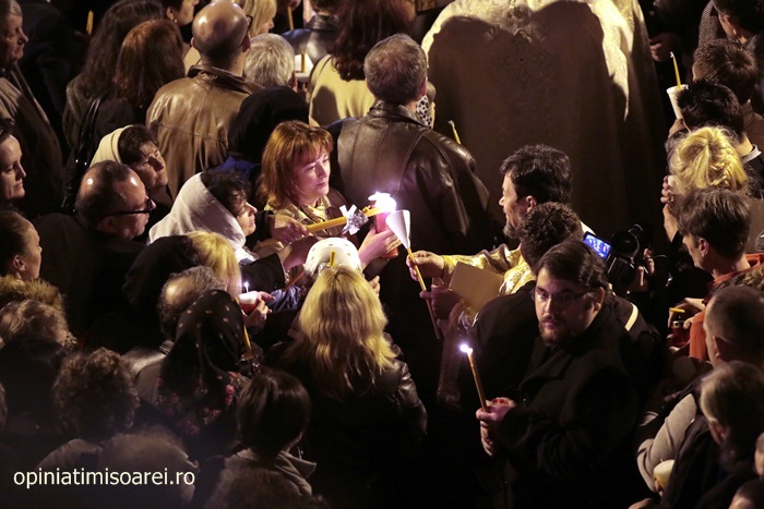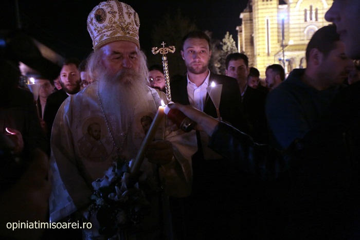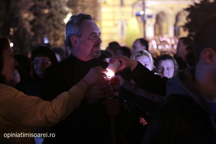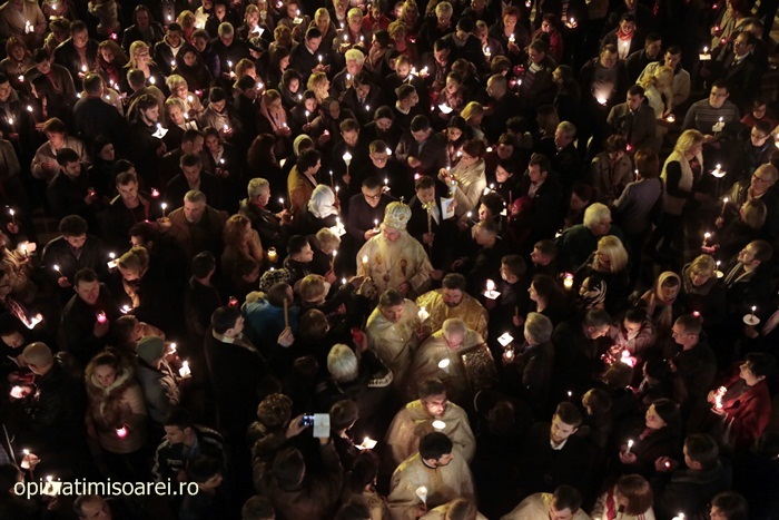 In Piata Victoriei din Timisoara lumea a inceput sa se stranga mult inainte de miezul noptii pentru a participa la slujba de Inviere de la Catedrala, prima tinuta de noul Mitropolit al Banatului, IPS Ioan Selejan.