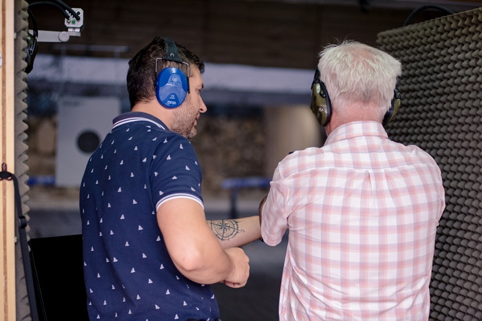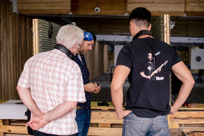 Chiar daca nu au tras cu arma pana acum, angajatii o pot face sub supravegherea unor instructori profesionisti la Blue Line, cel mai important poligon din Timisoara. Acesta organizeaza actiuni de team building pentru companiile din oras. Firmele isi aleg o zi pe saptamana in care vor sa isi trimita angajatii la poligon si stagiul are loc in trei etape: curs teoretic, exercitiu de tragere si un concurs.