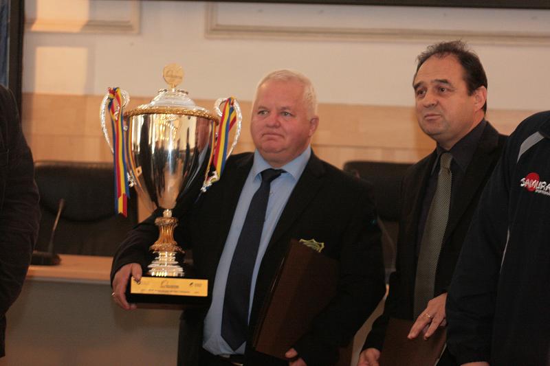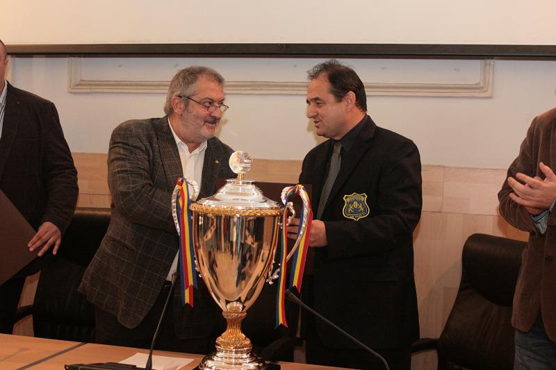TIMISOARA. Rugbistii timisoreni, in frunte cu staff-ul tehnic si finantatorii echipei au fost recompensati marti dimineata de oficilitatile locale pentru Cupa Romaniei castigata in week-end la Alba Iulia in fata echipei Stiinta Baia Mare. Primarul Timisoarei, Gheorghe Ciuhandu si viceprimarul Adrian Orza au organizat o receptie prin care i-au felicitat pe merituosii sportivi care dupa aproape 40 de ani au reusit castigarea unui trofeu: cupa Romaniei la rugby. 1