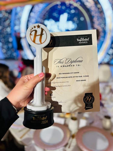 La cel mai important eveniment din industria hotelieră, a turismului și a ospitalității din România, Top Hotel Conference 2024, Ibis Timișoara City Center a fost desemnat “Cel mai Popular Hotel de 3 Stele din România“, distincție obținută în cadrul galei Top Hotel Awards 2024, eveniment organizat în data de 28 mai 2024 la JW Marriott Hotel din București.