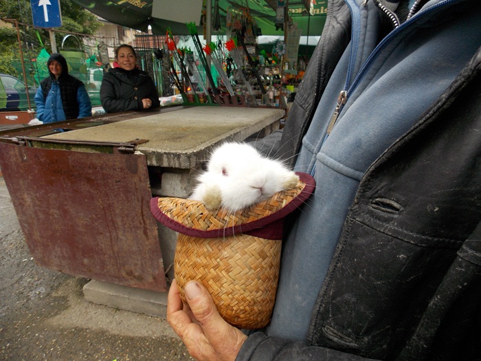 TIMISOARA. Zilele premergatoare Pastelui au adus in Piata de animale din Piata Balcescu mai multi comercianti de iepurasi vii, numai buni de facut cadou copiilor.