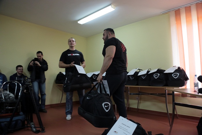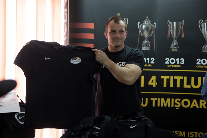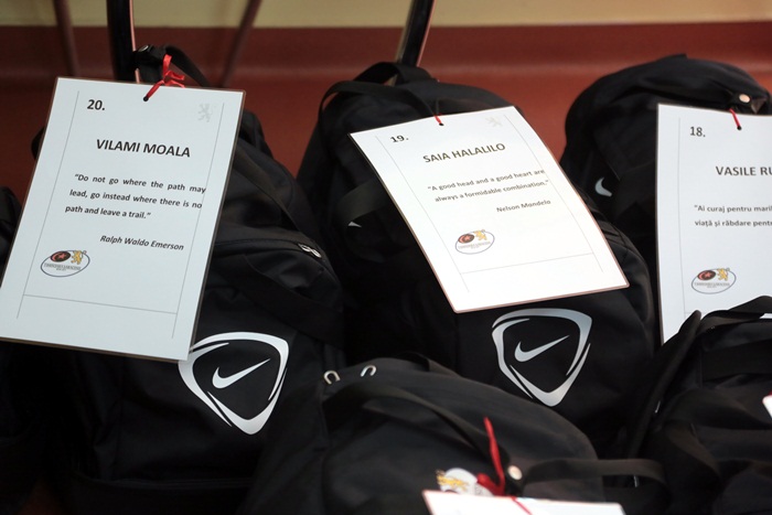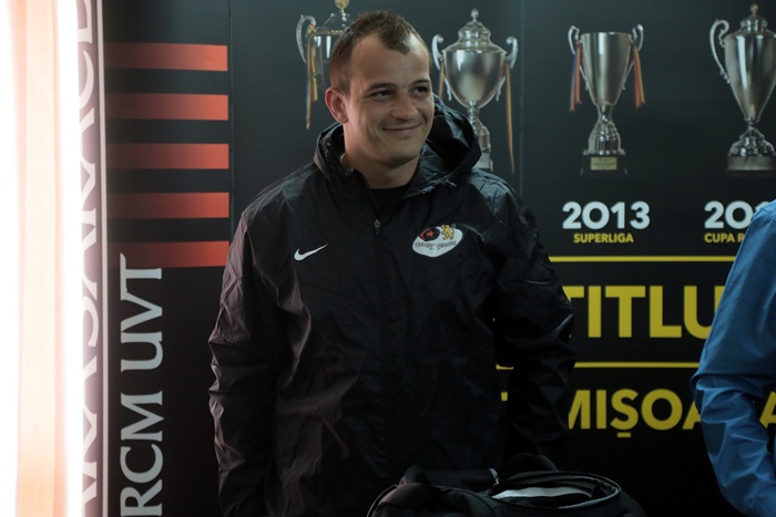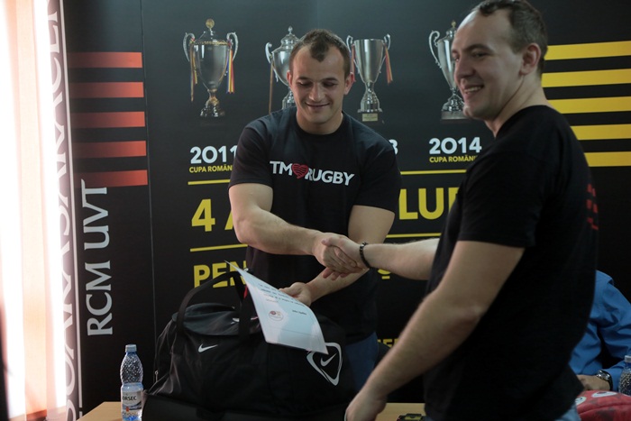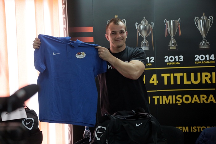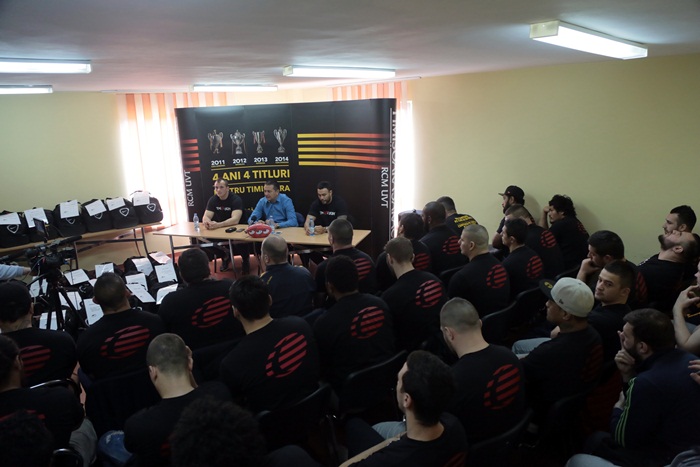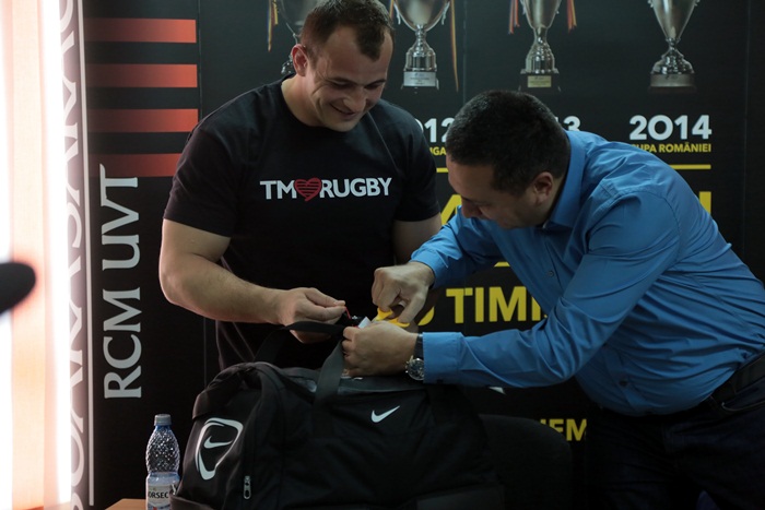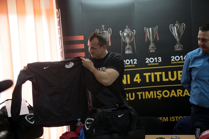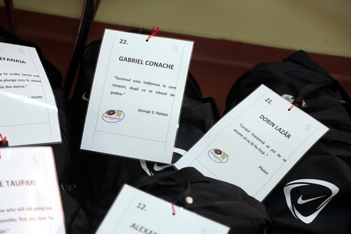 Tot lotul s-a reunit astazi intr-o mica sala de „prezentare” din incinta caminului „Cameliei”, sediul oficial al clubului. Intr-o atmosfera mai mult decat destinsa, putem spune chiar studenteasca, mai ales ca prezentarea a avut loc intr-o locatie unde sunt cazati si studenti ai UVT, jucatorii au primit bagaje voluminoase si personalizate cu un citat celebru.