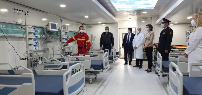 Ministrul de Interne, Marcel Vela, s-a aflat, sambata, la Timisoara, pentru a inaugura o unitate mobila cu 12 paturi de terapie intensiva care a fost montata in curtea Spitalului de Boli Infectioase ”Victor Babes” din Timisoara. Potrivit ministrului, doua astfel de unitati au fost trimise la Galati si Ploiesti, iar o a patra se afla la Ministerul de Interne si asteapta sa fie distribuita unde va fi nevoie.