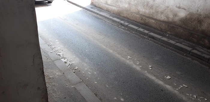 Un sofer a trecut printr-un moment groaznic, cand o bucata uriasa de tencuiala s-a desprins de pe tavanul uneia dintre arcadele rutiere, pe cand statea in coada la semafor.