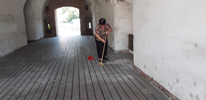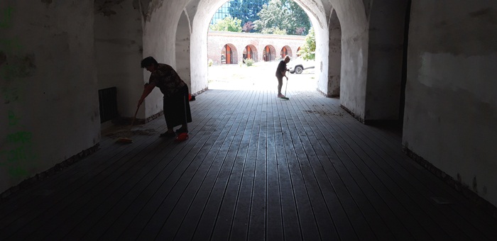 UPDATE: Odata ce pompierii si-au incheiat misiunea, la fata locului au sosit cateva femei de serviciu, angajate ale Muzeului ce functioneaza in Bastion, care s-au grabit sa indeparteze cu matura toate resturile de tencuiala ramase pe carosabil si pe platforma pietonala.