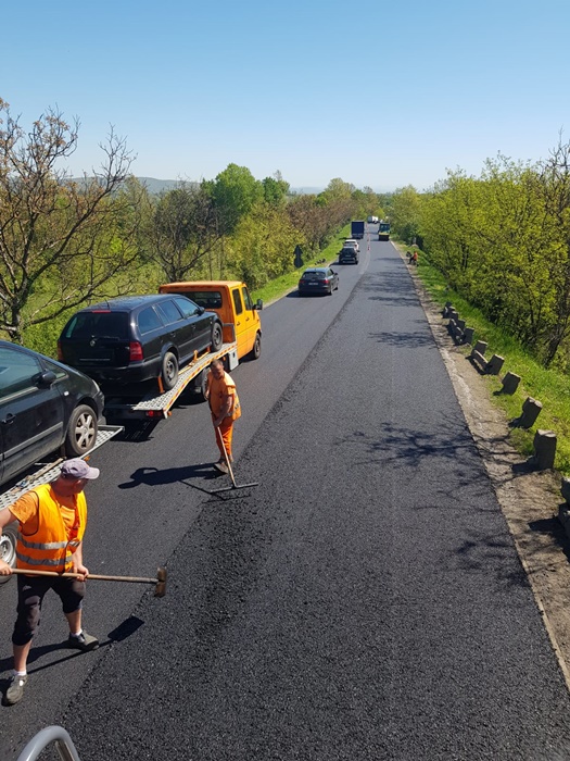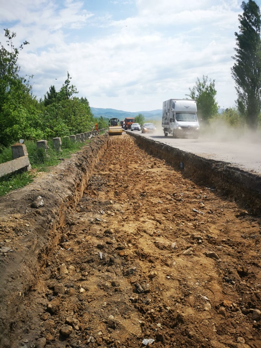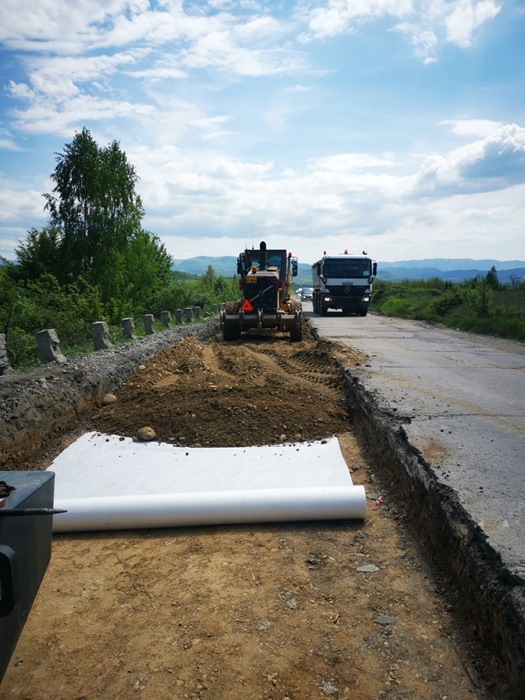 Se lucreaza pe suprafete intinse la refacerea structurii rutiere in zona Cosava de catre echipele de muncitori angajate de Directia Regionala de Drumuri si Poduri Timisoara.