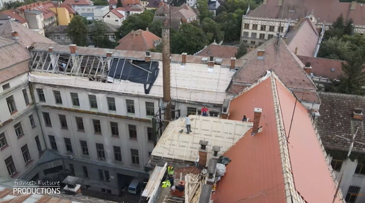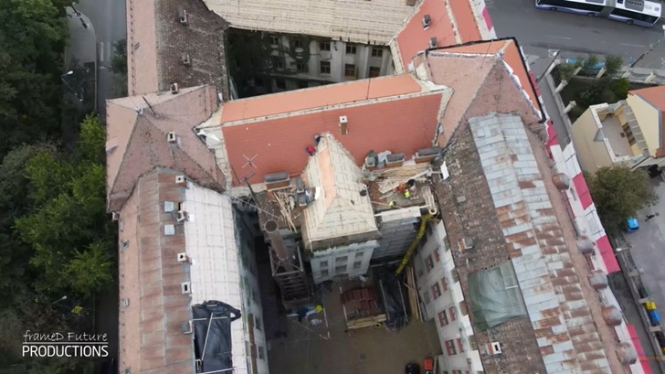 Muncitorii au inceput interventiile la acoperisurile care sunt cele mai distruse in incercarea de a proteja cladirea de ploile si ninsorile care vor urma in scurta vreme.