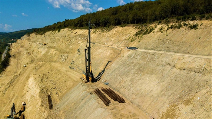 Constructorul se concentreaza in continuare pe cea mai provocatoare zona – faimosul Deal al Liliecilor, de la Soimus, unde se munceste la executarea zidurilor de sprijin, o operatiune foarte dificila.