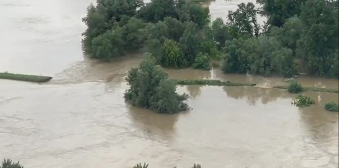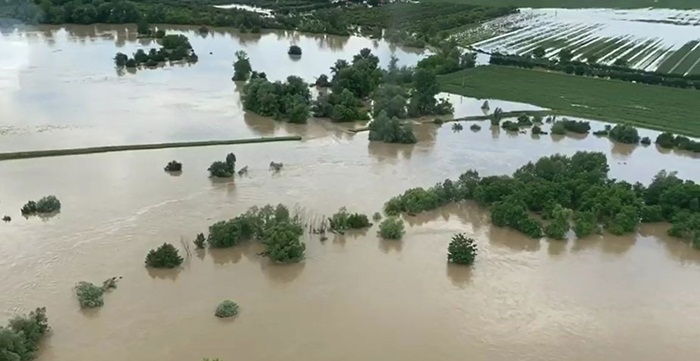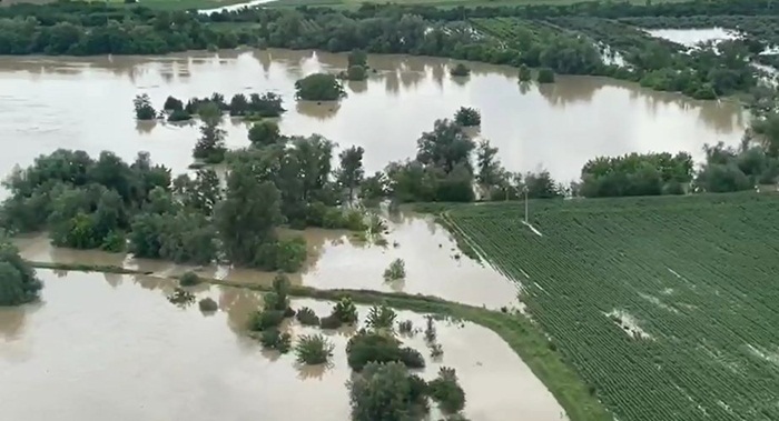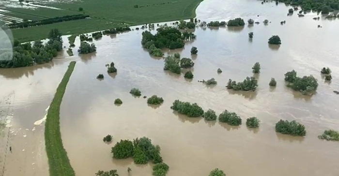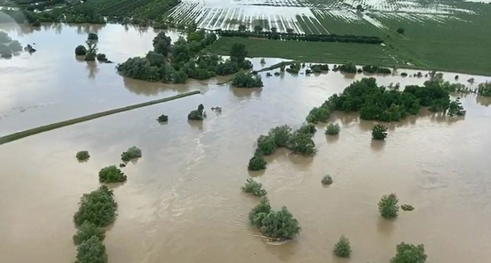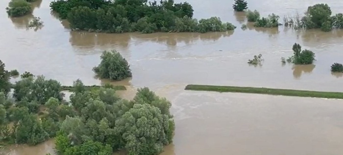 Imagini cu locurile inundate au fost surprinse din elicopter, oferind tabloul dezastrului.