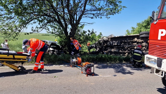 Grav accident pe drumul national Timisoara – Arad. Trei oameni au fost raniti, dupa ce un microbuz si un autoturism s-au izbit violent in dreptul localitatii Sagu din judetul Arad.